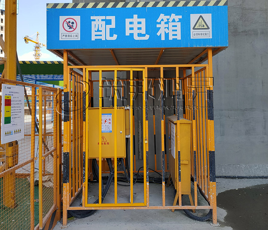 施工現場臨時用電配電箱采用全鋼結構防護棚,頂部雙層防護,配套側門可上鎖,整體拼裝方便、使用安全牢靠。