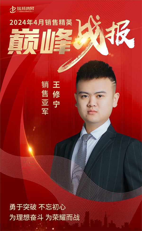 4月份,筑邦鴻昇又迎來(lái)了一場(chǎng)銷(xiāo)售的盛宴,我們的銷(xiāo)售團(tuán)隊(duì)在過(guò)去的4月份再次創(chuàng)造了輝煌,讓我們一同為銷(xiāo)售部精英取得的杰出成績(jī)喝彩。值此良機(jī),我們向大家介紹我們銷(xiāo)售部4月銷(xiāo)售業(yè)界的前三甲——冠軍康納輝、亞軍王修寧和季軍康治輝,他們的奮斗和成就展示了我們企業(yè)全心全意服務(wù)客戶的承諾和精神,同時(shí)也是我們?nèi)w銷(xiāo)售部成員的榜樣和鼓舞!