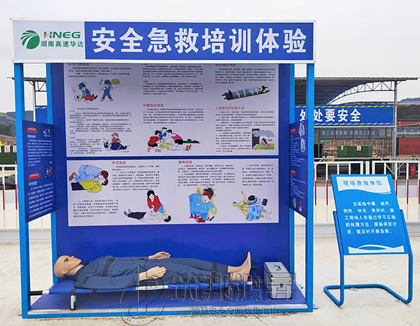 此次合作的安全教育培訓體驗區建設還包括了安全體驗館設備有VR智能操作臺、安全防護用品展示體驗、綜合用電體驗、安全帶使用體驗、安全急救培訓體驗、安全帽撞擊體驗、平衡木體驗、茶水亭等。旨在通過模擬建筑施工現場可能發生的各種安全事故,讓體驗者親身參與、體驗,寓教于樂,體驗不安全操作行為帶來的危害。筑邦安排專車送貨到懷化工地,同時安排了專業人手迅速到工地加班加點完成安裝。
