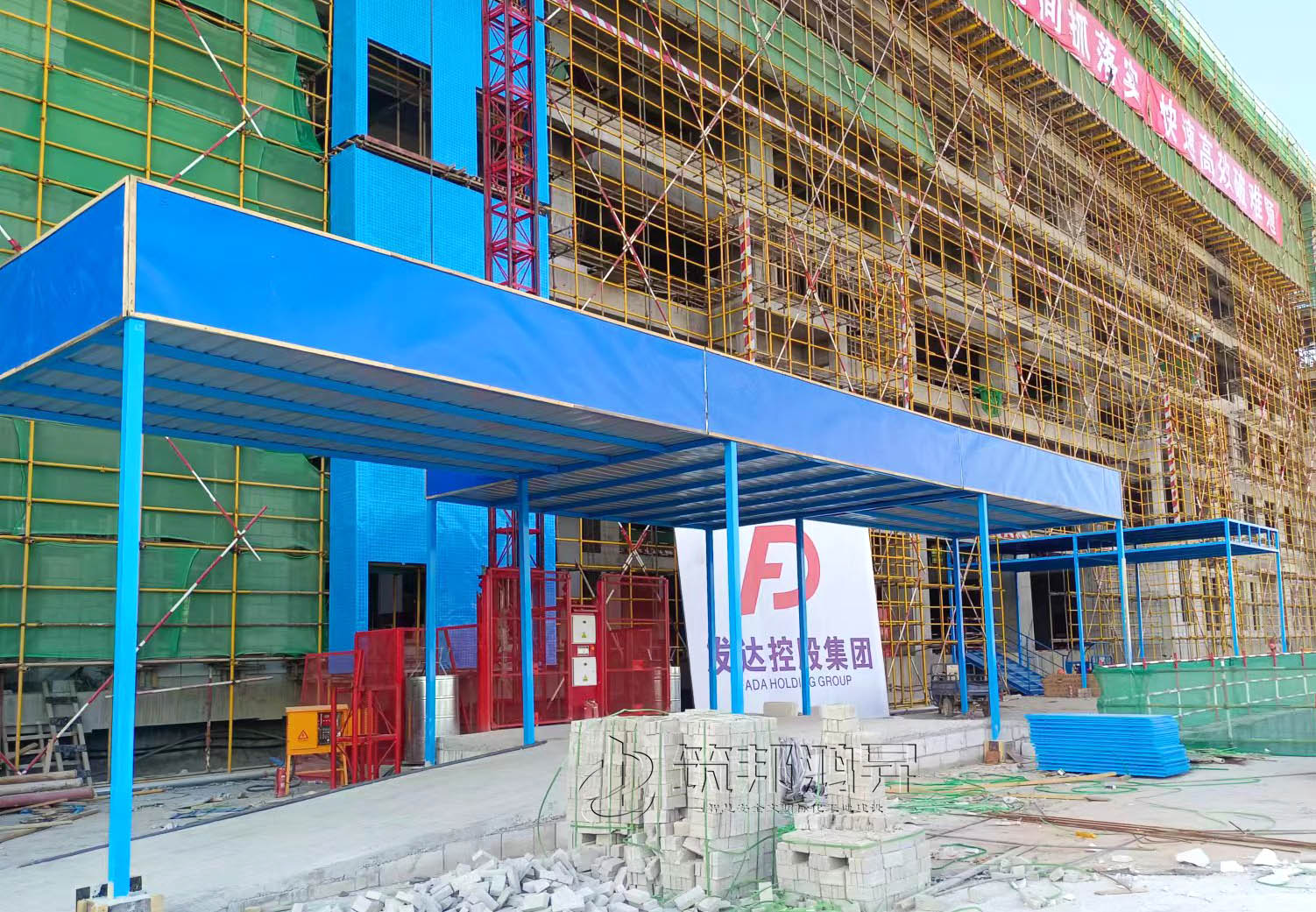 此次合作的安全標化產品還包括了樓層防護門、人貨電梯防護棚等設備。筑邦安排專車送貨到江西工地,同時安排了專業人手迅速到工地加班加點完成安裝。