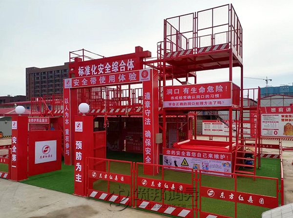 近日,東方紅集團在長沙承建的項目工地與筑邦鴻昇合作,采購了標準化安全體驗綜合體設備,用于產業工業的施工安全教育與培訓。該綜合體整體采用中國紅的設計,美觀醒目簡潔大氣,成為了項目工地上一道靚麗的風景線。
