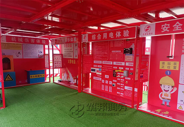 【筑邦鴻昇】安全體驗綜合體科學組合,占地面積小,美觀大氣,裝在工地就是一個醒目的風景點,大大提升了工地項目的形象。整體共搭建三層,更加大氣。一體化多功能無差別體驗。走進體驗區,第一層設置安全防護用品展示體驗、安全帶體驗、綜合用電體驗、安全帽撞擊體驗、滅火器演示體驗、機械傷害體驗等體驗。第二、三層設置洞口墜落體驗、重物搬運體驗、爬梯體驗,以及新式施工電梯防護門套裝、各種施工護欄、卸料平臺、塔吊護欄等標化設備展示。(除去洞口墜落體驗、安全帶體驗等主要設備,其他體驗設備和安全標化產品展示皆可定制,可按照客戶實際需求來定制。)
