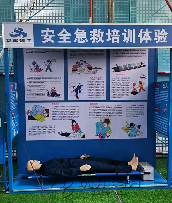 此次合作的工地安全體驗館建設包括了綜合用電體驗、安全帶使用體驗、鋼絲繩使用體驗、班前講評臺、安全急救培訓體驗、洞口墜落體驗、安全帽撞擊體驗、安全防護用品展示體驗、墻體傾倒體驗、滅火器演示體驗等。筑邦安排專車送貨到商洛工地,同時安排了專業人手迅速到工地加班加點完成安裝。