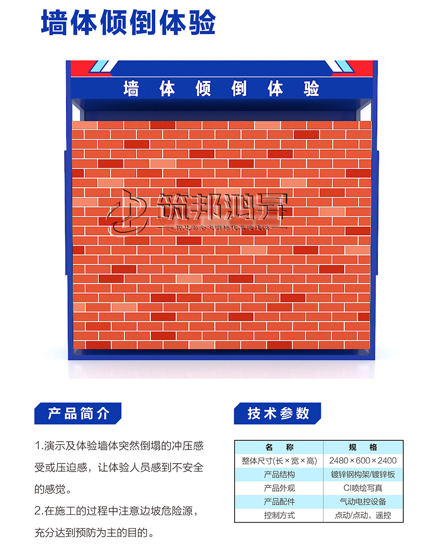 【筑邦鴻昇】實體安全體驗館采用視、聽、體驗相結合的立體式安全教育模式,實施可感受、可操作的實體化安全教育。安全體驗館通過模擬建筑施工現場可能發生的各種安全事故,讓體驗者親身參與、體驗,寓教于樂,體驗不安全操作行為帶來的危害,讓每個員工都有實際操作的動手能力,真正達到“以人為本預防為主”為目的的場館。通過體驗,讓體驗者熟練掌握安全操作規程以及緊急情況的安全對策,達到提升職業技能、提高安全意識的目的。實體體驗館有(常規款+鈑金款+經濟款),下面展示的是經濟款。